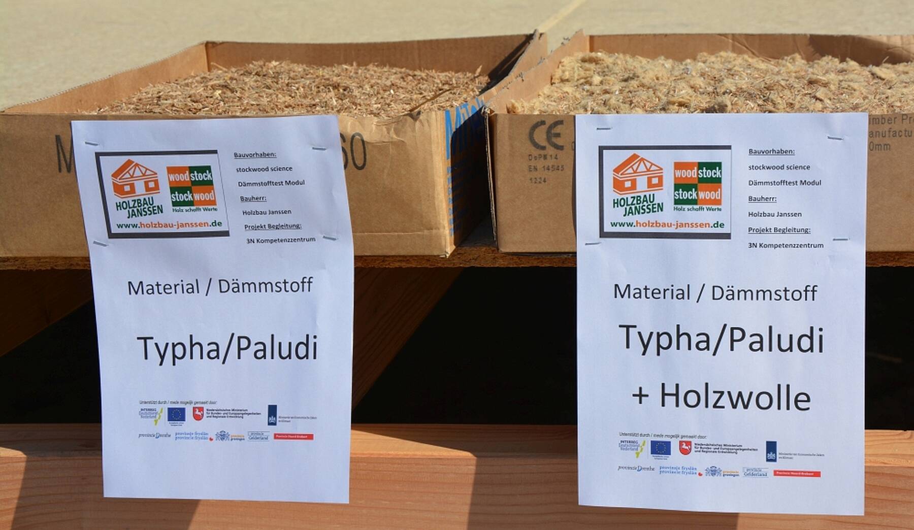 Schon im Vorfeld zeigte sich, dass die neuen Materialien richtig aufbereitet und eingebracht eine beachtliche technologische und auch baupraktische Alternative zu den bisher verwendeten Produkten ist. Es sei wichtig, den Feinstaub aus den gehäckselten Pflanzenresten zu eliminieren, und beim Einblasen von Typha Holzwolle als Stützfaser mit einzuarbeiten, berichtete Firmenchef Rolf Janssen.