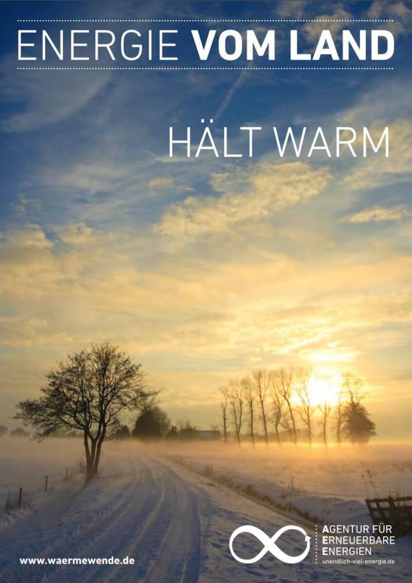 Neue Broschüre ENERGIE VOM LAND HÄLT WARM erschienen© Agentur für Erneuerbare Energien Die Erneuerbare Wärme- und Kälteversorgung kann durch Potenziale des ländlichen Raums in der Bioenergieerzeugung gesteigert werden. Lokale Biomasse aus der Land- und Forstwirtschaft oder aus regional anfallenden Abfällen und Reststoffen kann Stoffkreisläufe schließen und bietet eine effiziente Strom- und Wärmenutzung. Acht ländliche Regionen, in ganz Deutschland verteilt, werden mit Ihren energieeffizienten Projekten in der Broschüre vorgestellt.