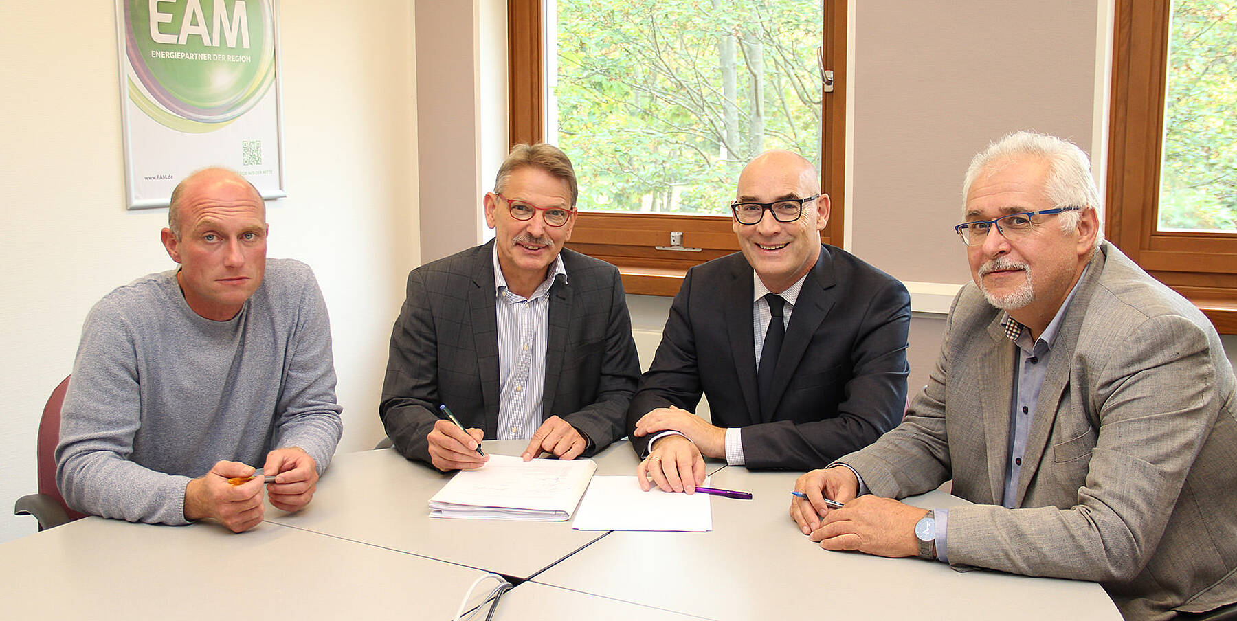 Die Entscheidung ist gefallen: Die EAM wird das Nahwärmenetz und die angeschlossene Biogasanlage in Jühnde (Landkreis Göttingen) übernehmen. Entsprechende Kaufverträge unterzeichneten am Donnerstag die Vorstandsmitglieder Eckhard Fangmeier und Matthias Weiß für die Genossenschaft Bioenergiedorf Jühnde sowie Siegmund Laufer und Thomas Wetzel als Geschäftsführer und Leiter Betrieb für EAM Energie Plus GmbH in der EAM-Unternehmensleitung in Kassel.