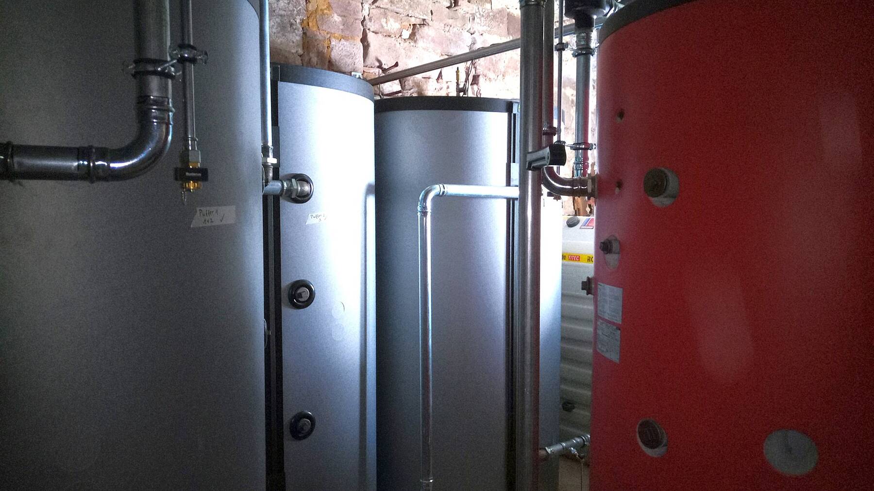 Die neue Wärmeversorgung verbindet zwei erneuerbare Energiequellen mit ihren besten Eigenschaften: eine Luftwärmepumpe für den Sommer und die milden Tage, eine Kesselanlage mit Holzpellets für die Zeiten mit geringeren Temperaturen.