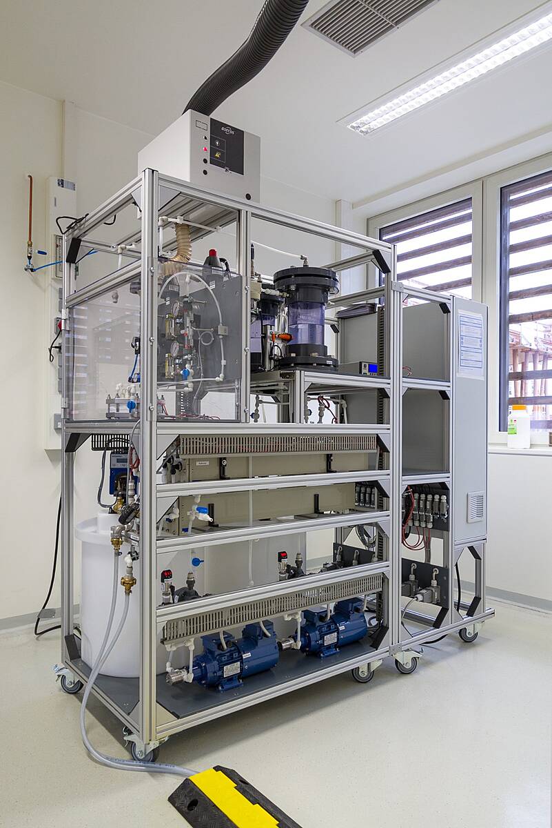 Zudem ist der Demonstrator so ausgelegt, dass auch sogenannte Stacks, das heißt Elektrodenstapel, integriert werden können. »Dadurch können wir die Produktionsrate von Ameisensäure erhöhen und den Demonstrator für die weitere Entwicklung der Elektrolysezelle hin zu einem industriellen Maßstab nutzen«, sagt Pietzka.