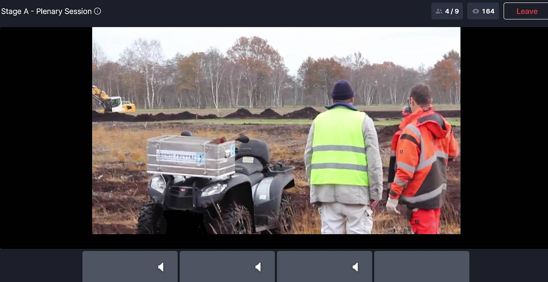 Erstmals dabei war auf dieser internationalen Bühne auch das Projekt Sphagnumfarm Barver. Projektmanager Dr. Jens-Uwe Holthuis (Stiftung Naturschutz im Landkreis Diepholz) präsentierte mit einem Posterbeitrag die Herausforderungen beim Bau der Anlage und die Ergebnisse des ersten Betriebsjahres. Zusätzlich konnten die 270 Kongressteilnehmer den Werdegang der Sphagnumfarm Barver bei einer virtuellen Exkursion erleben. In der anschließenden Diskussion drehte sich das Interesse um die Aufteilung der Produktionsfläche in Barver und um die für Pflege und Ernte nötigen Maschinen. Englische Teilnehmer zeigten sich Interessiert, wie in Barver Torfmoose erfolgreich ausgebracht wurden.